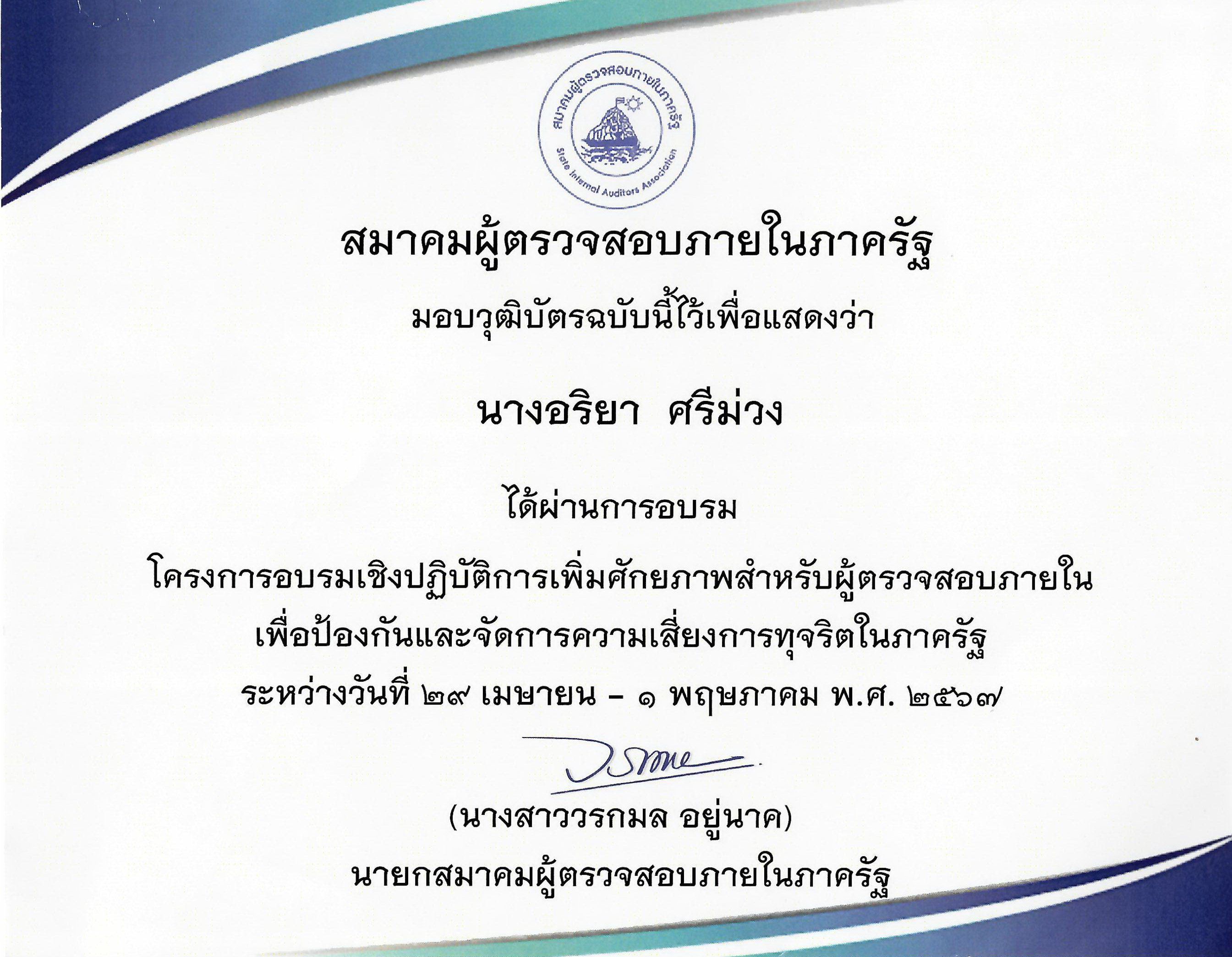 นางอริยา ศรีม่วง (หัวหน้ากลุ่มตรวจสอบภายใน)