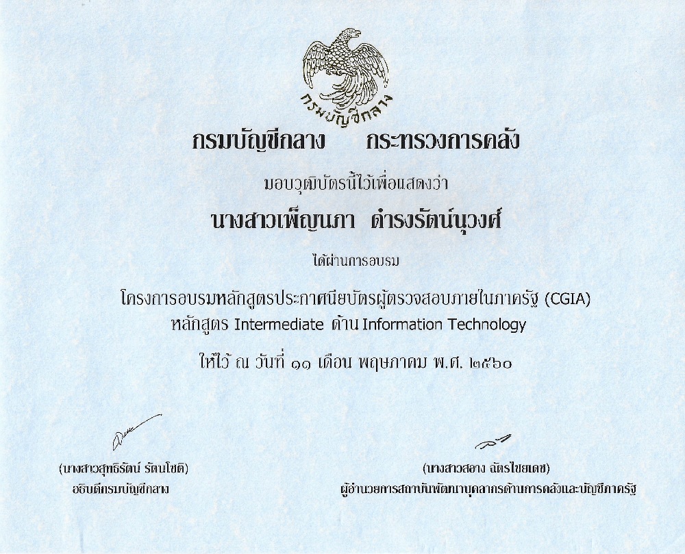 - หลักสูตรประกาศนียบัตรผู้ตรวจสอบภายในภาครัฐ(CGIA) หลักสุตร Intermidiate Information Technology