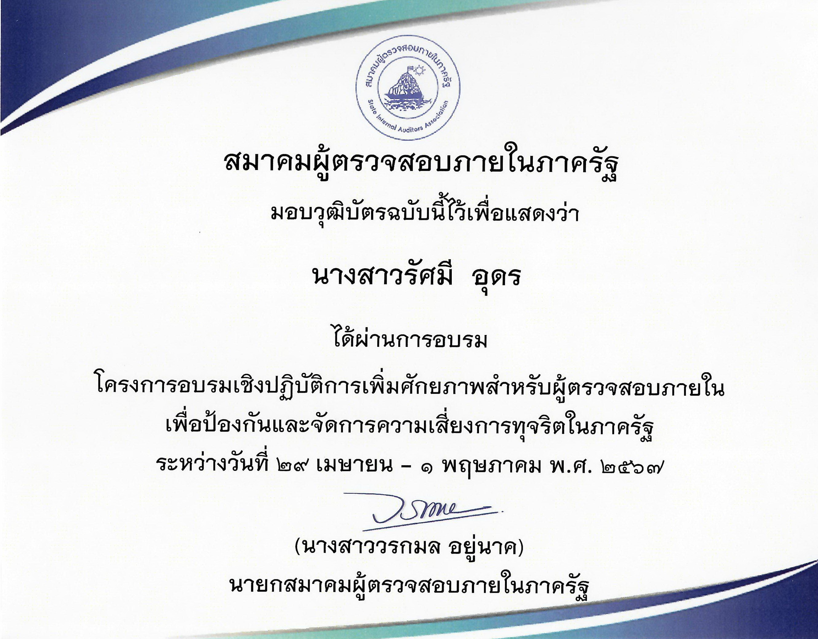 - การเพิ่มศักยภาพสำหรับผู้ตรวจสอบภายในเพื่อป้องกันและจัดการความเสี่ยงการทุจริตในภาครัฐ พ.ศ. 2567
