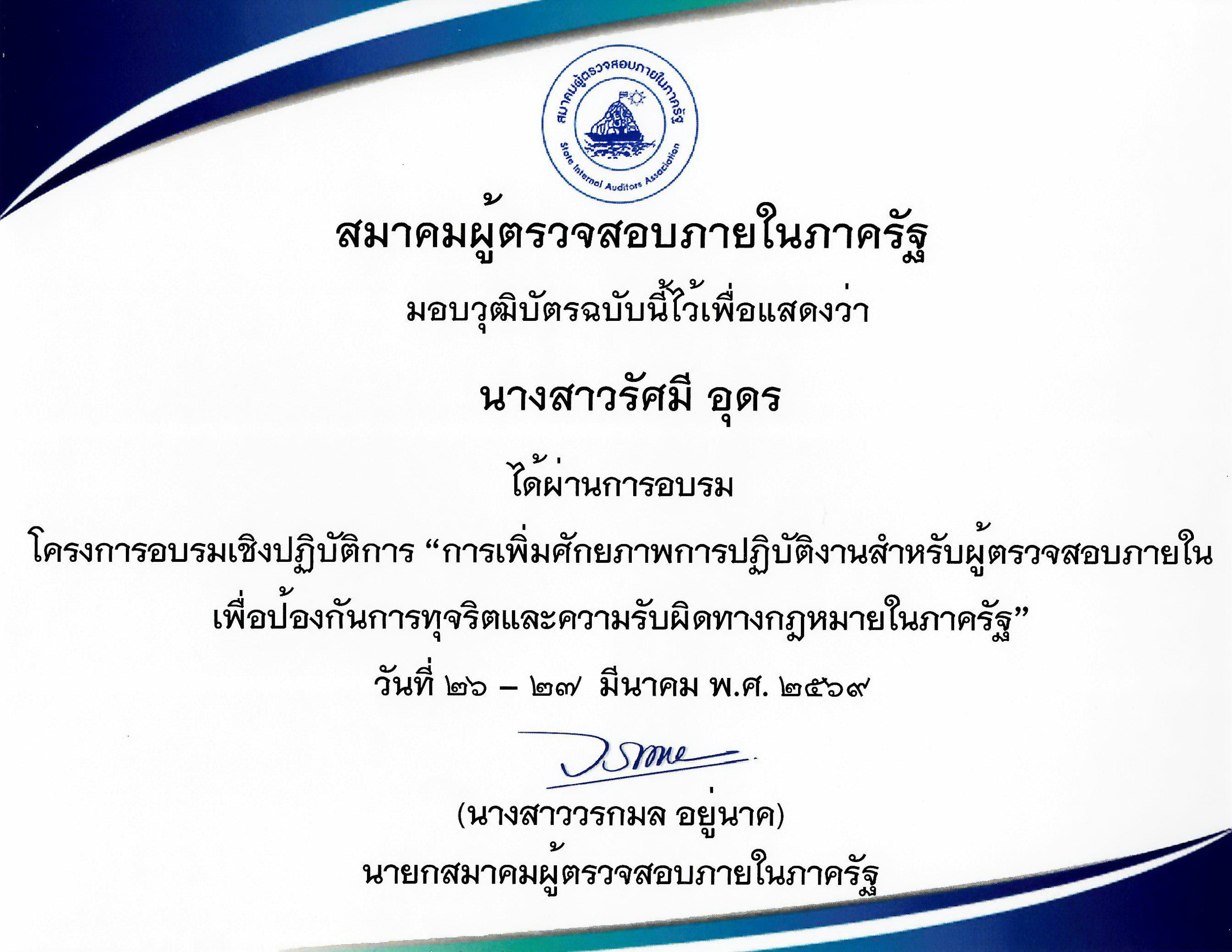 - หลักสูตรประกาศนียบัตรผู้ตรวจสอบภายในภาครัฐ(CGIA) หลักสูตร Intermediate ด้าน Finance And Compliance